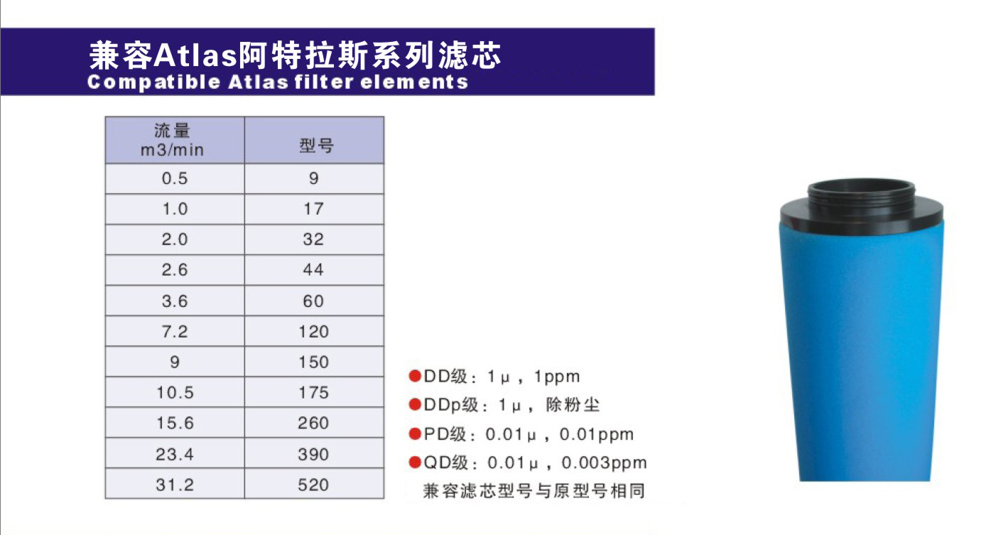 兼容阿特拉斯精密濾芯阿特拉斯精密濾芯是安裝在空壓機的空氣進口處,用于濾除空氣源中的塵埃沙粒、水分、油霧等,保障氣源的清潔度,同時提高油氣分離濾芯、機油...
