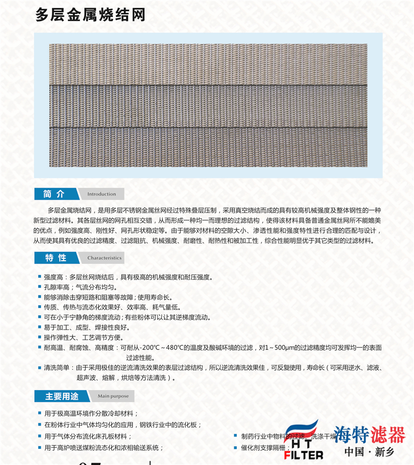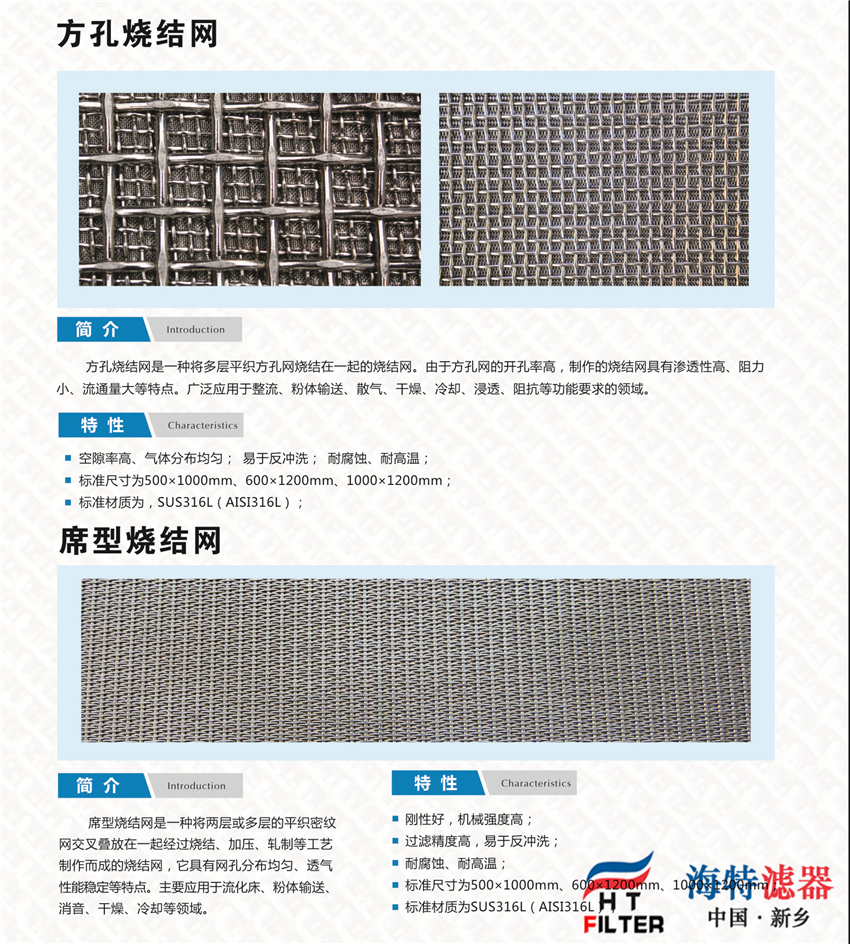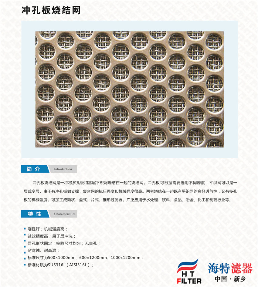 1)標準材質(zhì):SUS304、SUS316L;SUS沖孔板燒結(jié)網(wǎng);