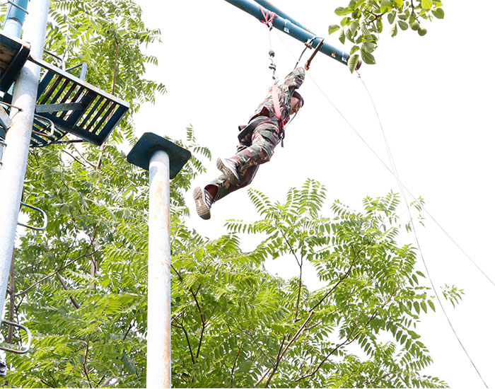 教練員首先介紹了拓展訓練的由來,然后是通過一系列的歡快活動,營造團隊氛圍,建立相互信任的基礎。緊接著在教練的指導下,全體人員分成三個小組,每個小組分別有自己的隊名、口號、隊歌。在信任背摔、高空抓桿、盲人方陣、畢業墻等活動上進行了比拼。其中翻越畢業墻則強烈意識到,團隊成功是個人成功的基礎;個人成功必須建立在團隊其他成員的共同努力與共同支持的基礎之上,高空抓桿時每個成員必須膽大心細,敢于挑戰,相互鼓勵,戰勝恐懼;集激情與速度是鍛煉意志和培養團結協作能力的品德情操。