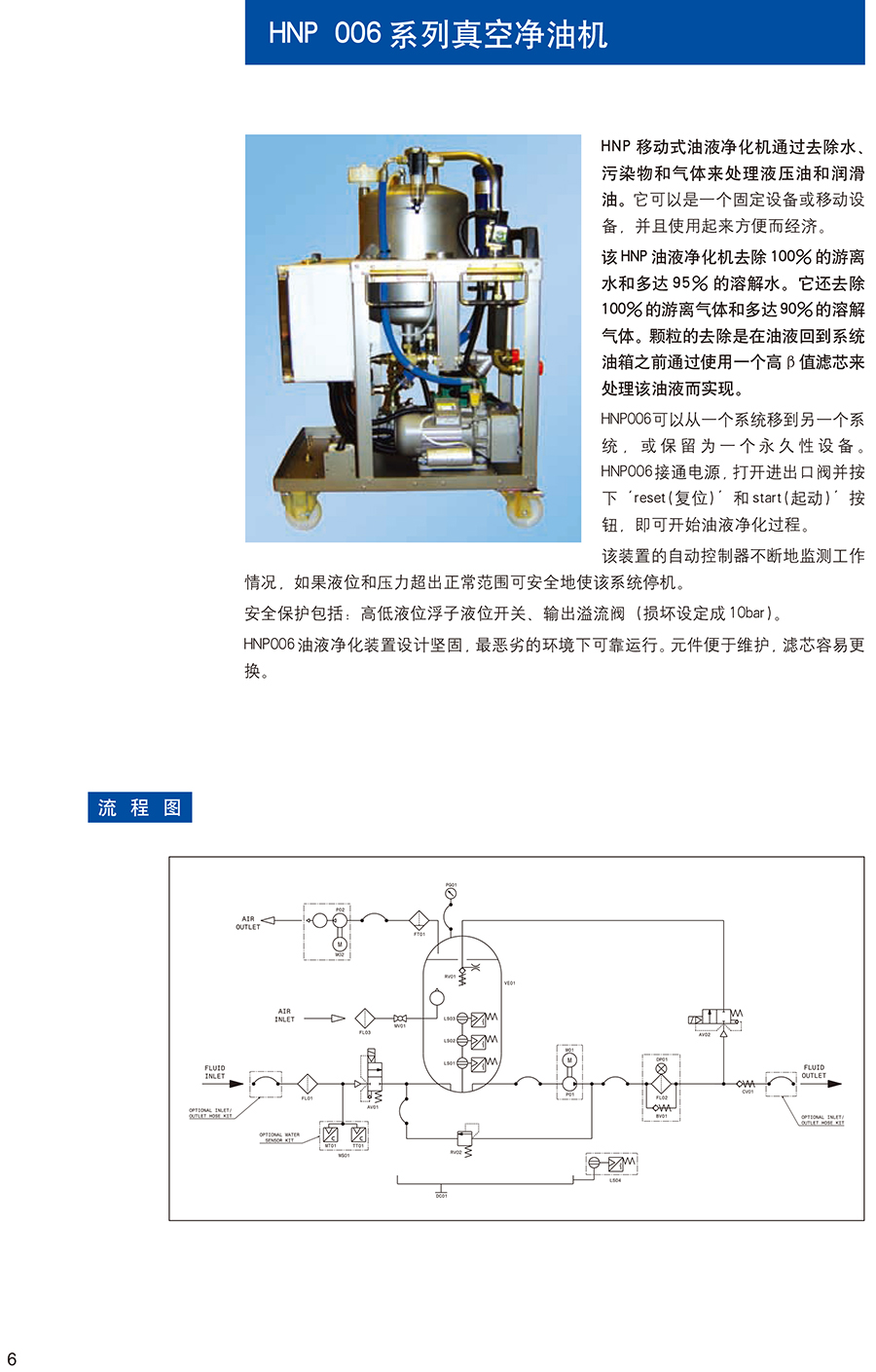 HNP006移動式油液凈化機通過去除水、污染物和氣體來處理液壓油和潤滑油。它可以是一個固定設(shè)備或移動設(shè)備,并且使用起來方便而經(jīng)濟。該HNP油液凈化機去...